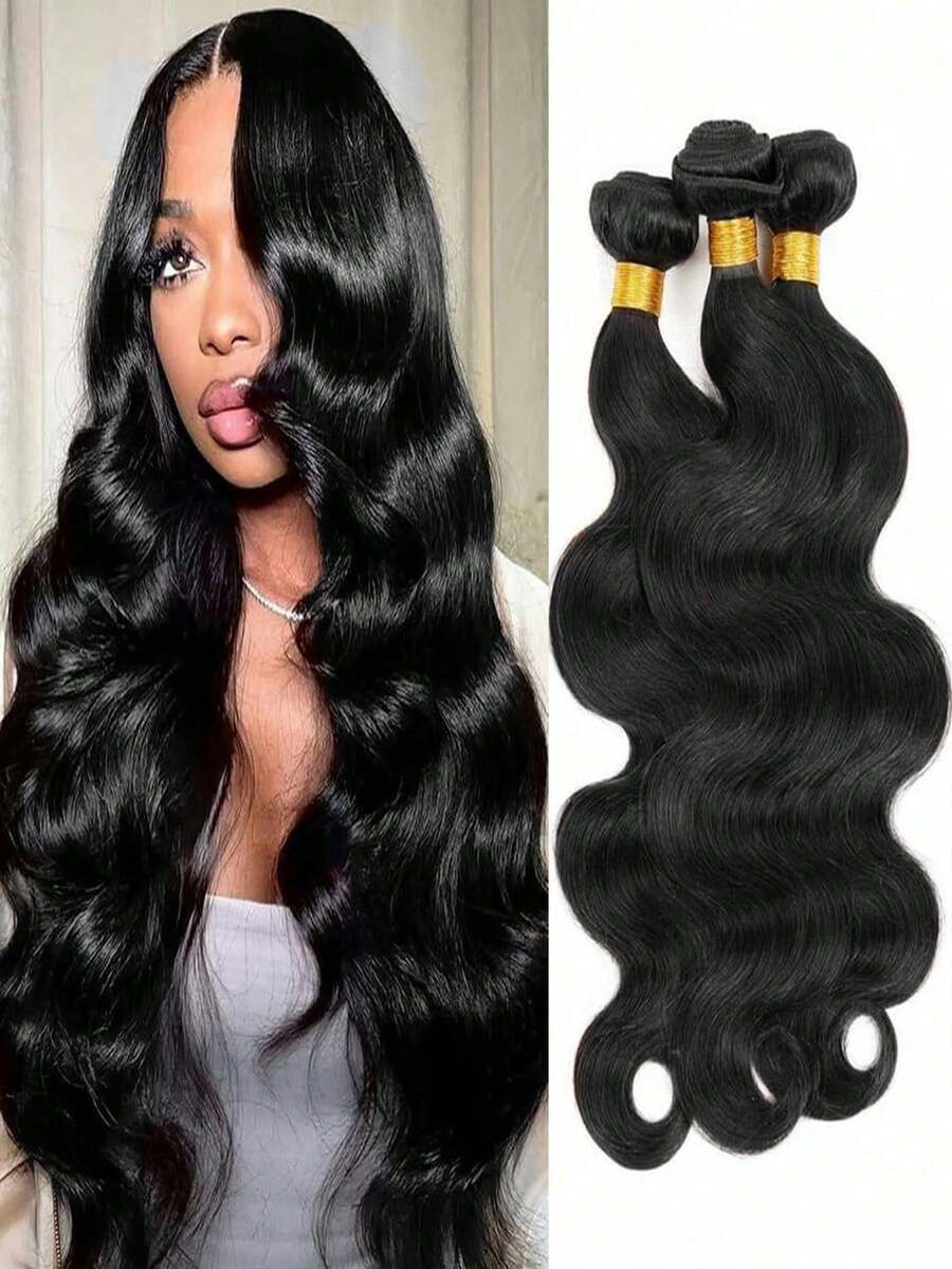 • 1/3/6 piezas Extensiones de cabello negro ondulado natural de 14-22 pulgadas, extensiones de cabello sintético resistentes al calor, peinados DIY - Negro - Ver 9