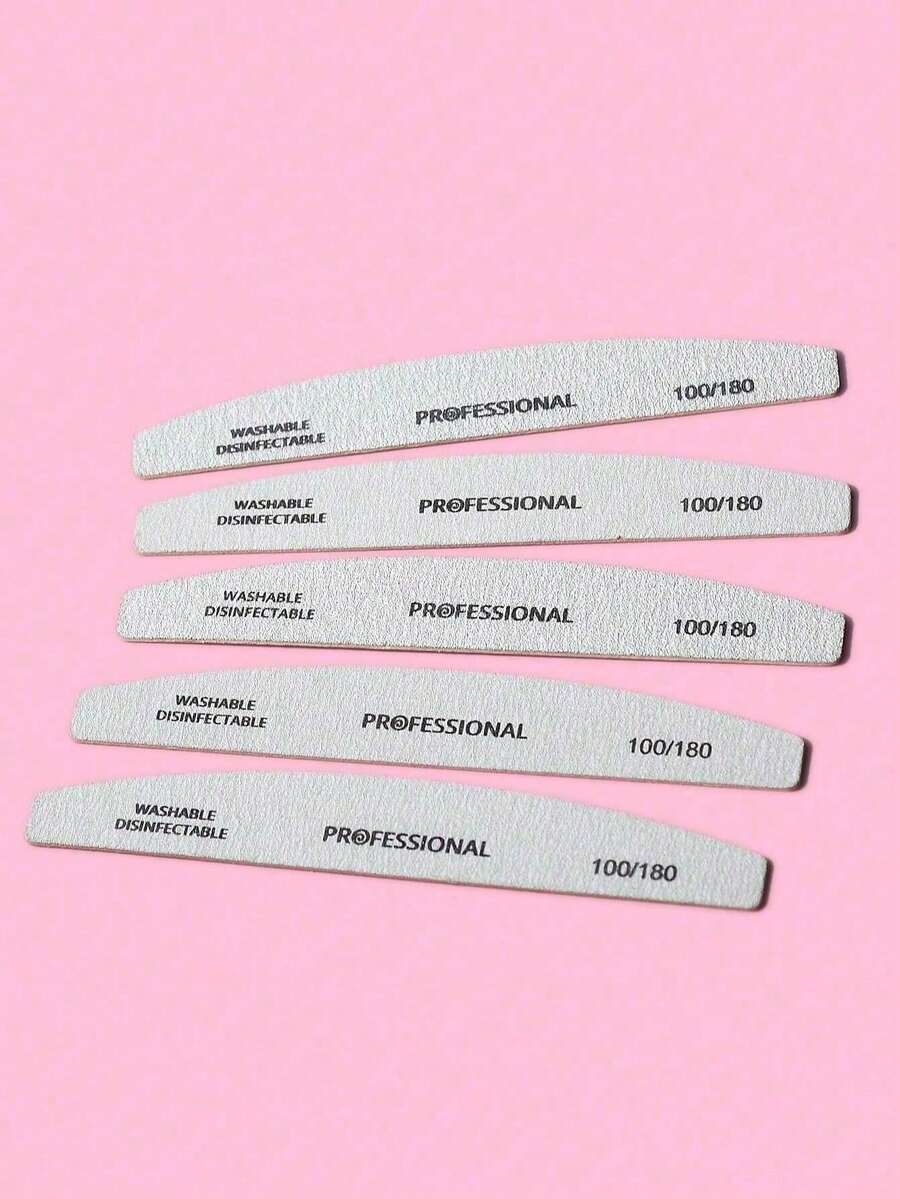 10 piezas Limas de uñas de media luna de 100/180 granos, doble cara, tablillas de esmeril lavables y reutilizables, bloques de lijado de uñas para uñas naturales para uso doméstico y en salón
