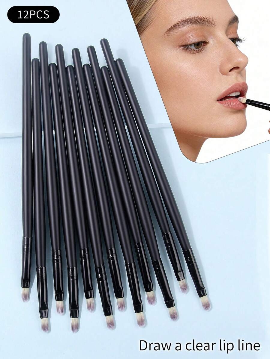 12 piezas Brochas de maquillaje de labios multifunción, cerdas suaves y precisas, contorneo de labios preciso, ideal para principiantes y profesionales