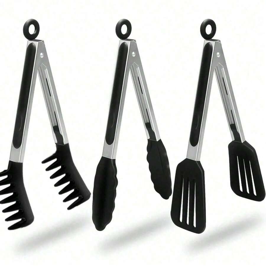 1 pieza Pinzas de acero inoxidable resistentes al calor, adecuadas para carne, ensaladas, pan, barbacoa, bufé, utensilios de cocina, herramienta de cocina esencial, regalo de Navidad