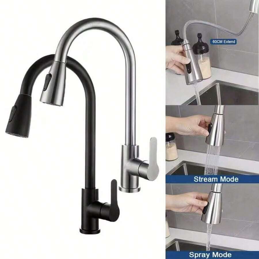 1 pieza Grifo multiusos de acero inoxidable 304 de tono plateado moderno con varios modos de flujo de agua, apto para lavabo de baño, balcón, lavandería, inodoro, fregadero de cocina, retráctil, hogar, restaurante, hotel