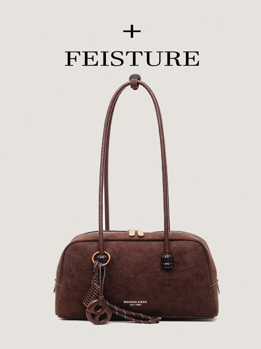 1 pieza Bolso de mujer de un solo hombro de tela retro, con colgante, cierre de cremallera, adecuado para salidas diarias, citas, ir al trabajo