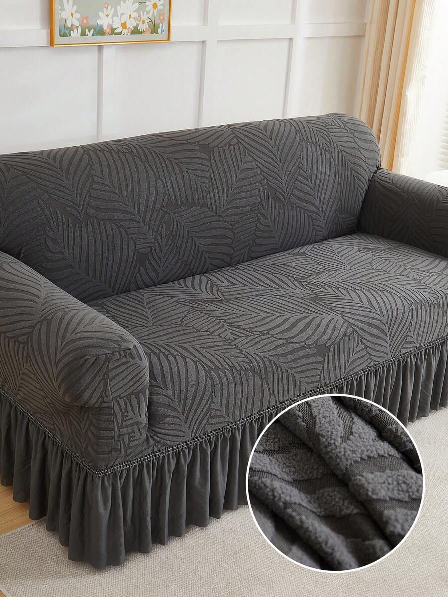 1 pieza Falda elástica engrosada con estampado de hojas para sofá, diseño con volantes, funda protectora de sofá a prueba de polvo y suciedad, apta para bancos, sofás de sala de estar, muebles de sala de estar, lavable a máquina, se puede limpiar en seco