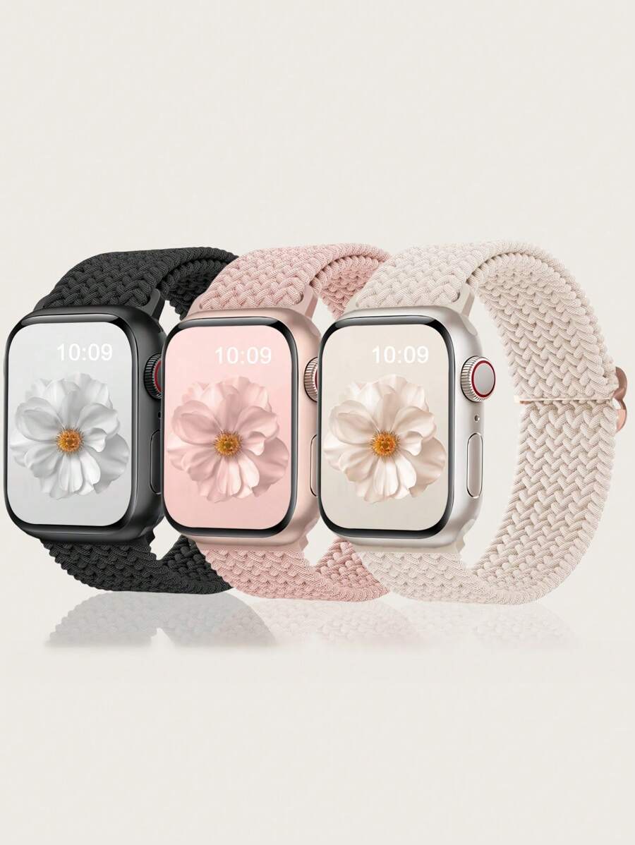 3 paquetes de correa elástica trenzada de nailon compatible con Apple Watch de 49mm, 46mm, 45mm, 44mm, 42mm, 41mm, 40mm, 38mm, Ultra 2/Ultra para hombres y mujeres, ajustable con correa de bucle único para Apple Watch Ultra 2, Ultra Series SE 11/10/9/8/7/6/5/4/3/2/1