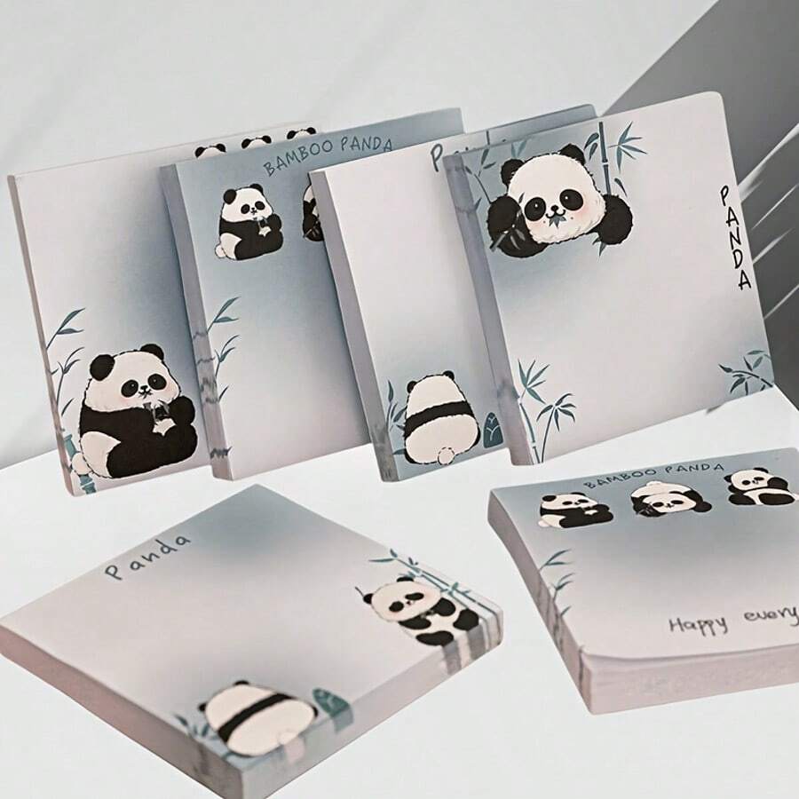 4 piezas de notas adhesivas con diseño de panda adorable - Notas adhesivas prácticas para el escritorio y la oficina, blocs de notas de oficina muy atractivos, útiles escolares, de vuelta a la escuela