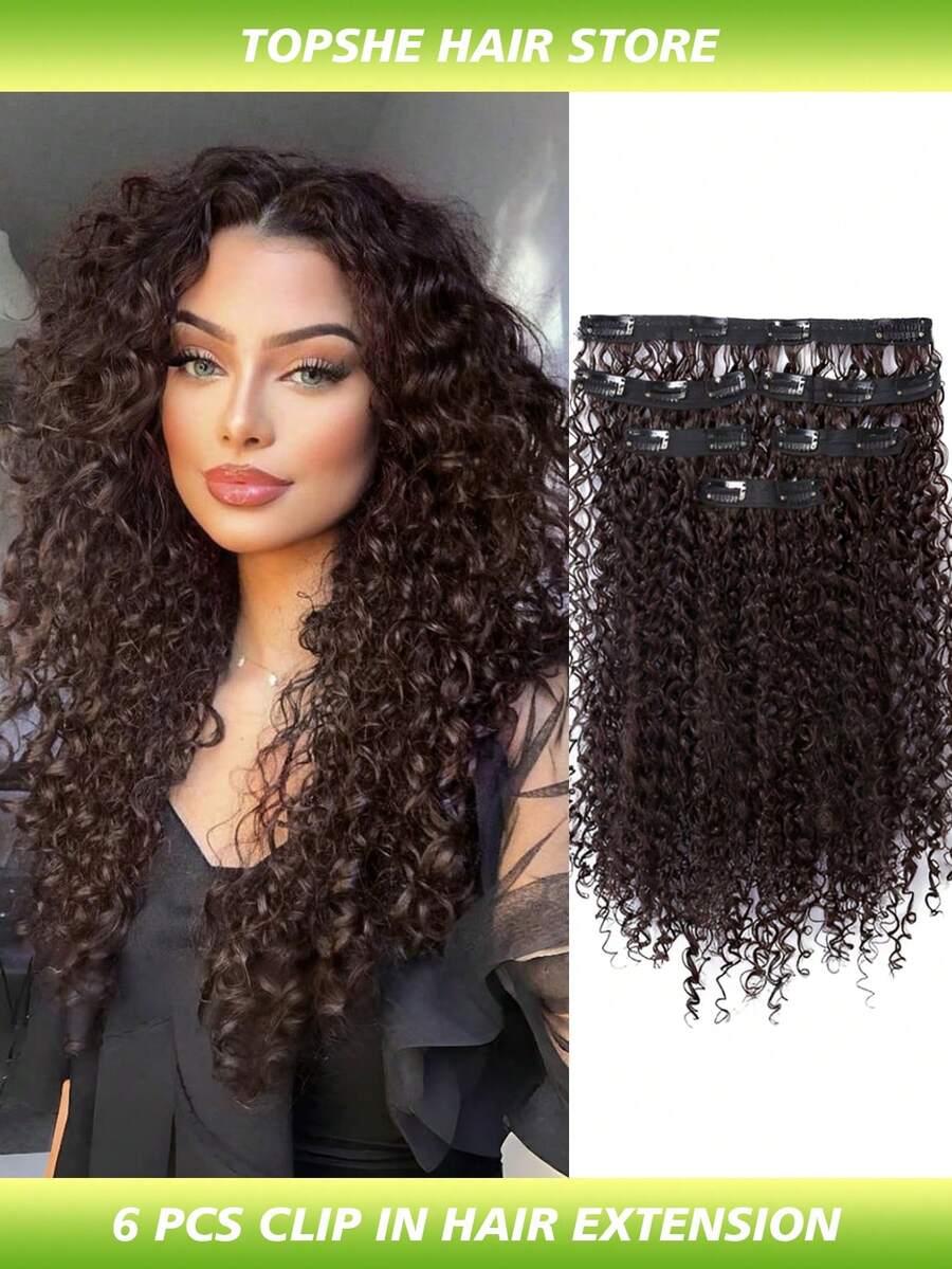 6 piezas Extensiones de cabello con clip de 16 pulgadas, extensiones de cabello rizado sintético con clip para mujeres, postizos