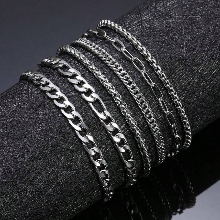Set de 6 piezas de pulseras de acero inoxidable, pulseras de cadena para hombres y mujeres
