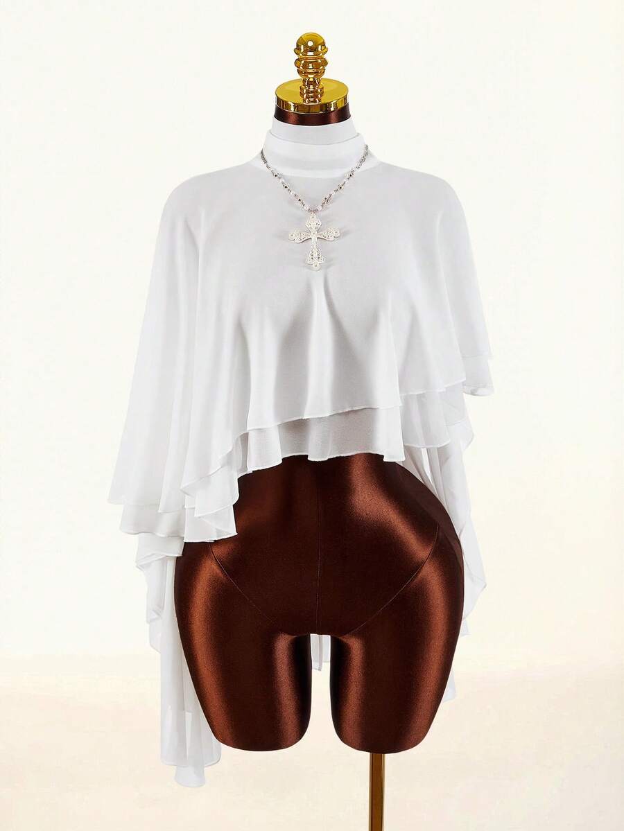 Amplova Cubrecuerpo de mujer con cuello alto, espalda descubierta, lazo y bajo asimétrico semitransparente