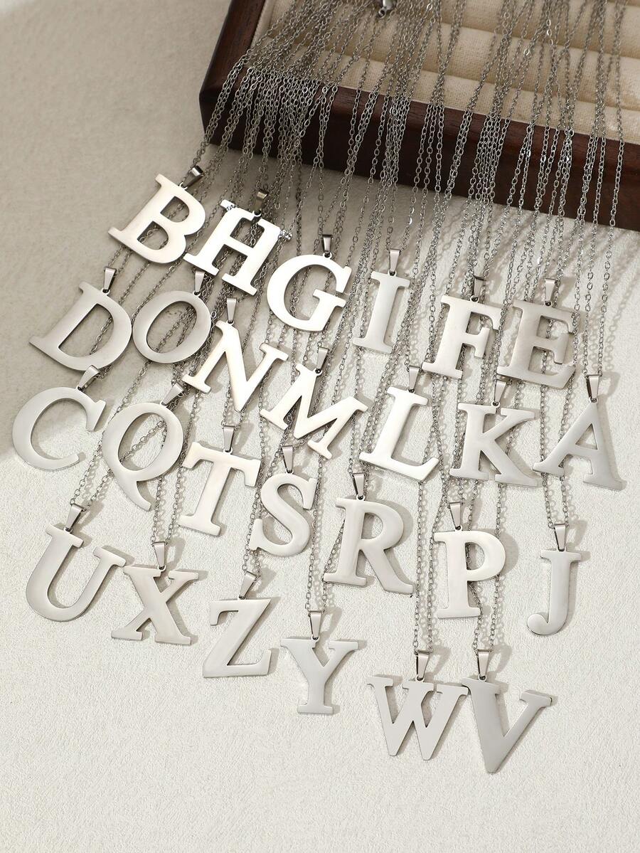 Aomogo 1 pieza Collar de acero inoxidable simple y de moda con 26 letras que no se decoloran, regalo perfecto para hombres en cumpleaños y días festivos