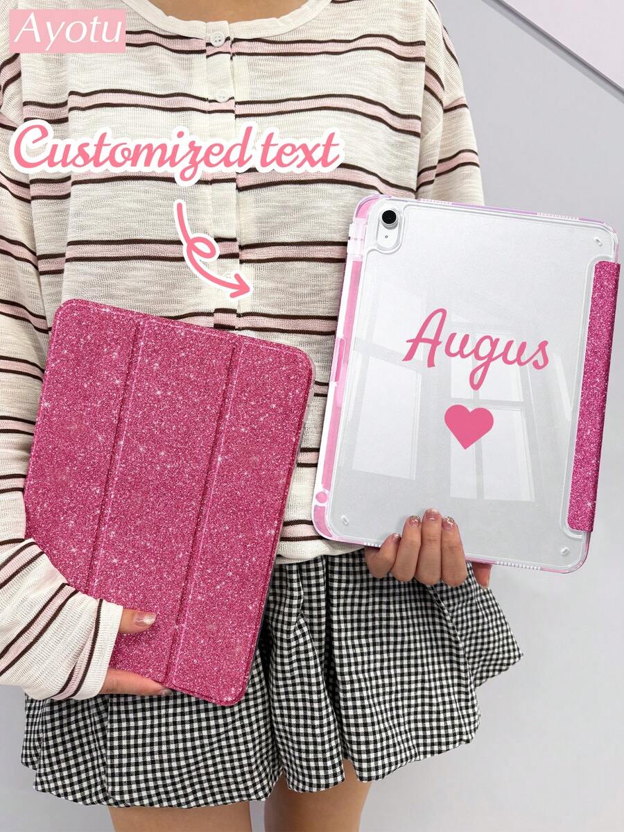 Ayotu 1 Funda personalizable para tableta/teléfono con brillo y triple pliegue, compatible con todos los modelos de iPad, con soporte, con portaplumas, de carcasa dura resistente a los arañazos, ultra delgada y ligera para protección, 2025phonecase