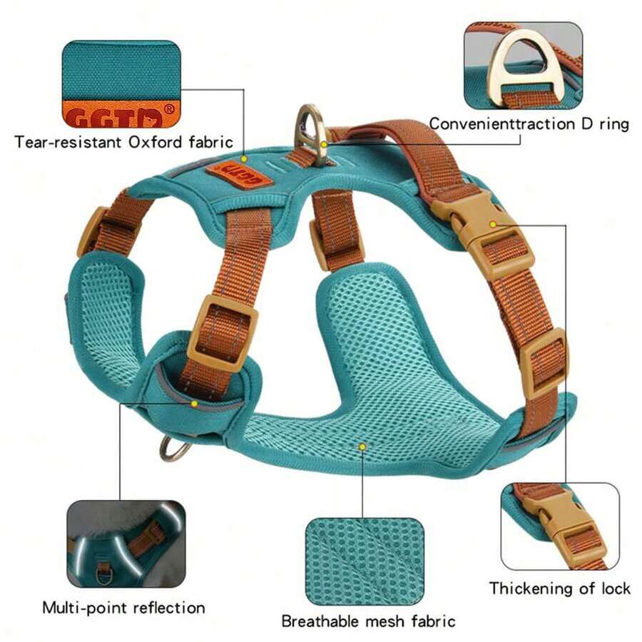 Conjunto de arnés táctico de alta resistencia para perros, adecuado para perros grandes, correa de pecho ajustable y antitracción, chaleco de servicio reflectante de fácil control para entrenamiento de mascotas