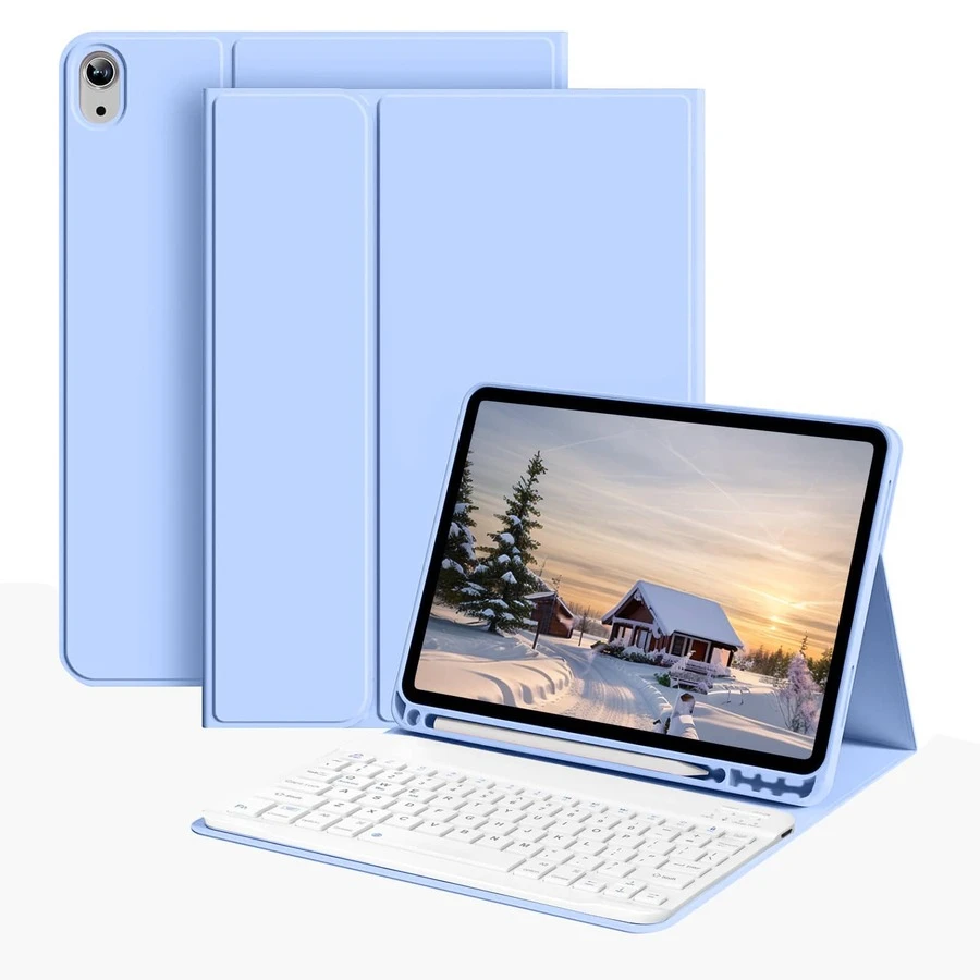 Teclado inalámbrico Bluetooth desmontable (150mAh) con ranura para bolígrafo, funda de teclado para Samsung Galaxy Tab, iPad, Redmi Pad SE (Azul)