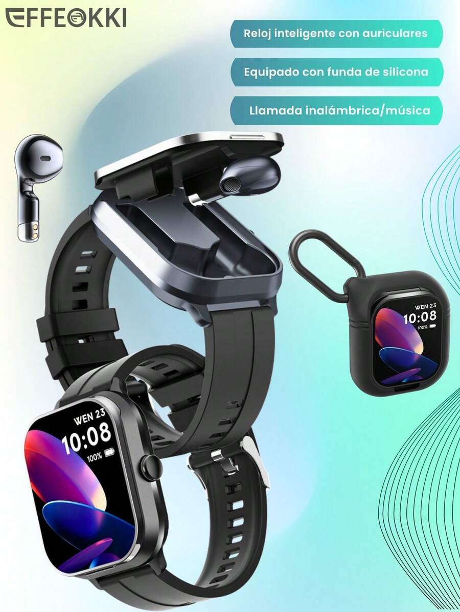 EFFEOKKI Smartwatch D8Pro 2 en 1 con auriculares internos y funda de silicona - Auriculares inalámbricos TWS, auriculares, reloj inteligente con frecuencia cardíaca y deporte compatible con iPhone y Android