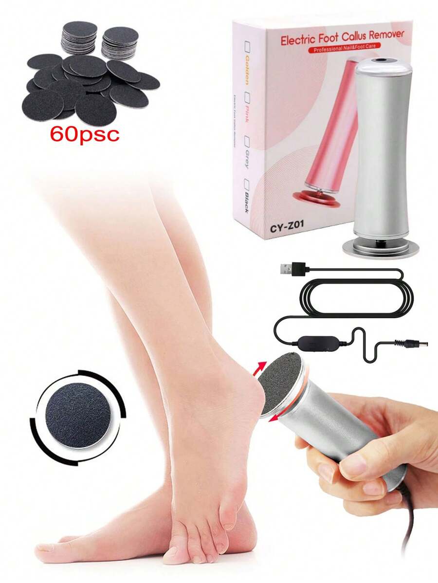 Lima eléctrica para pies, removedor eléctrico de callosidades con 60 piezas de papel de lija de recambio, dispositivo eléctrico de pedicura ajustable en velocidad para hombres y mujeres, suaviza pies ásperos y con callosidades