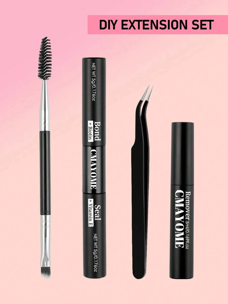 Kit de herramientas para pegamento de pestañas, pegamento de pestañas resistente al agua, incluye pegamento de pestañas, líquido fijador, pinzas para pestañas, removedor, a prueba de sudor, suave, de secado rápido, no irritante, herramientas esenciales para maquillaje de ojos