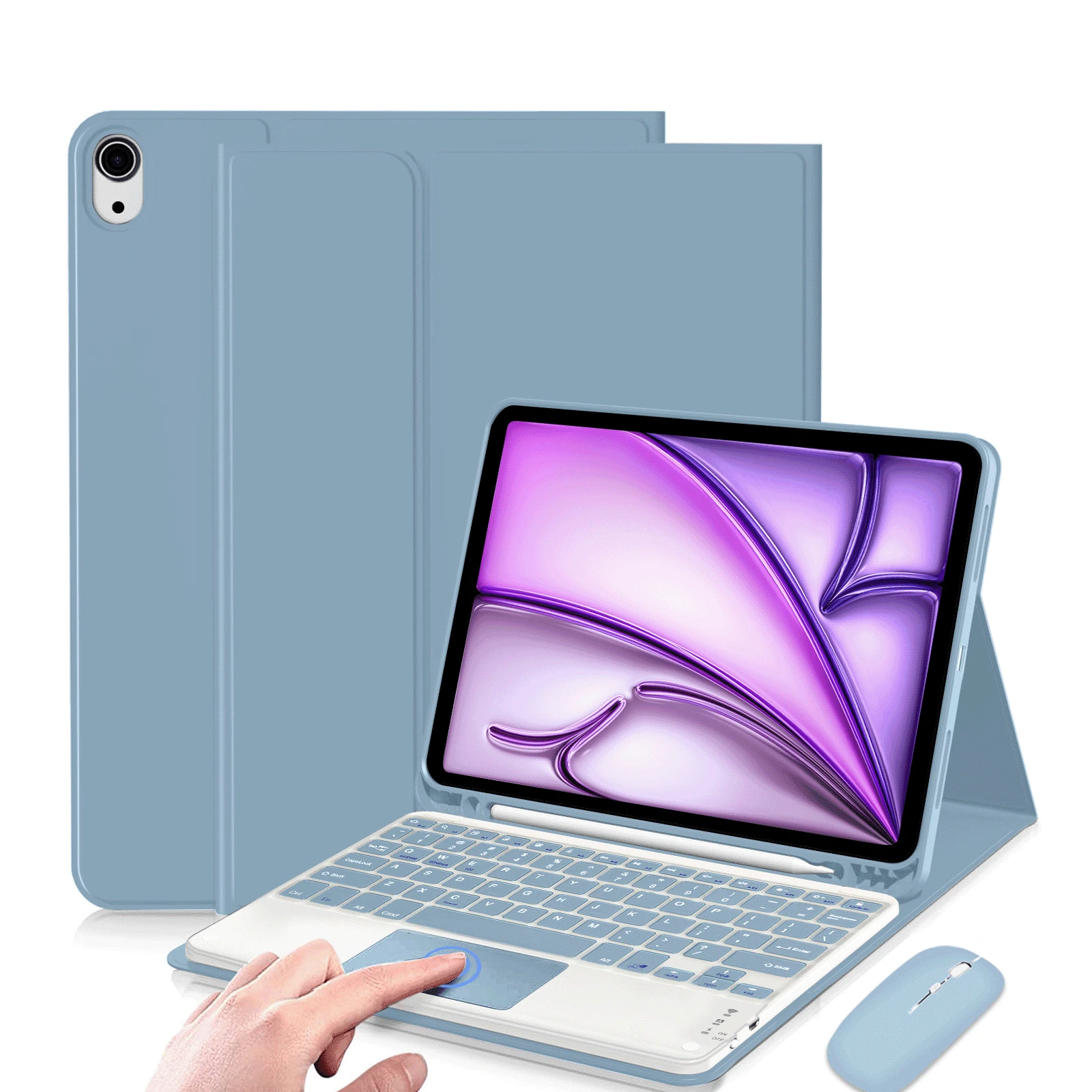 Funda con teclado desmontable y recargable Bluetooth (280mAh) con touchpad compatible con Samsung Galaxy Tab / / SE, incluye ranura para bolígrafo (Azul Brumoso)