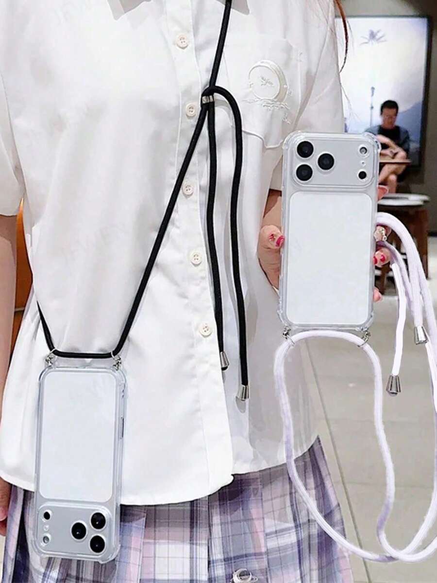 Funda de teléfono con cordón bandolera compatible con iPhone 17 Pro Max, 17 Pro, 17, 16 Pro Max, 16 Pro, 16, 15 Pro Max, 15 Pro Max, 15 Pro, 15 Pro Max, 14 Pro, 13, 12 Pro Max, 11, con protección de cámara, a prueba de golpes, funda transparente suave