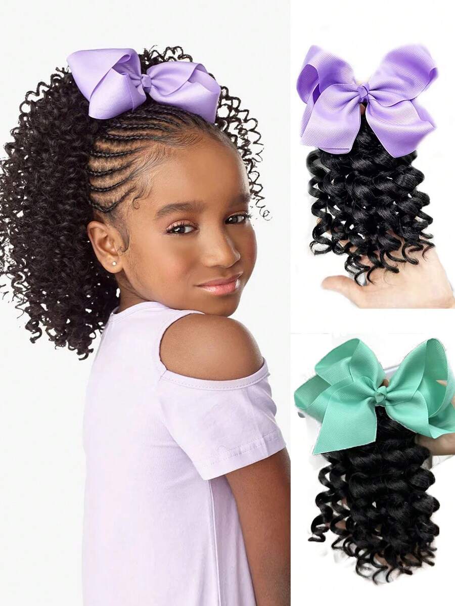 1 pieza Extensión de cola de caballo rizada sintética de 8 pulgadas para niños, extensiones de cola de caballo con elástico