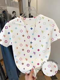 Blanco crema, camiseta gráfica con estrella de mar, concha salada y perla en lazo, estilo minimalista de manga corta y cuello redondo para niñas preadolescentes, adecuada para uso diario, estilo callejero, salidas, hogar, vacaciones, regreso a la escuela, primavera y verano #1 Más vendidos