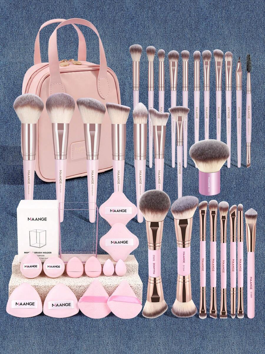 MAANGE 2/5/7 piezas Juego de brochas de maquillaje de cabeza gemela con brocha para rubor, brocha para base, brocha para acabado, brocha para polvo suelto, herramientas de maquillaje para viajar, juego de brochas, kit de brochas de maquillaje, juego de brochas de maquillaje, juego de maquillaje completo, juego de brochas de maquillaje, kit de maquillaje completo, kit de brochas, juego de brochas de maquillaje, set de regalo de maquillaje, set