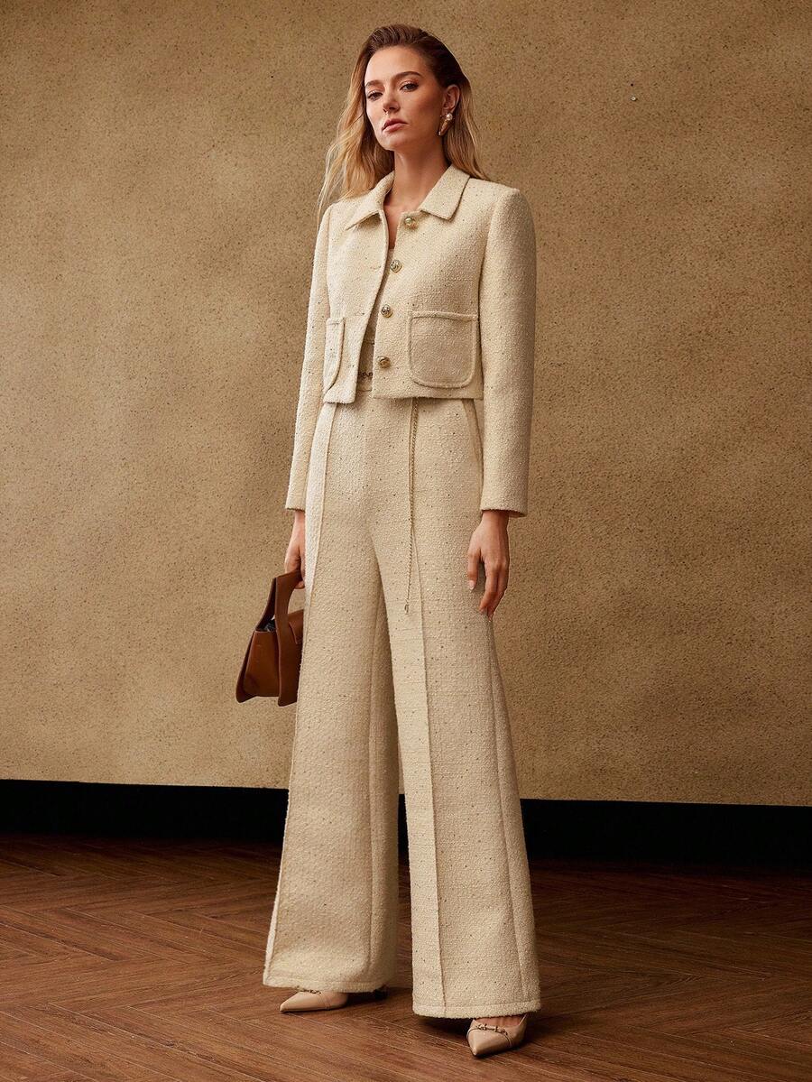 MOTF PREMIUM CHAQUETA CUADRADA DE TWEED DE LANA, INVIERNO, CITAS