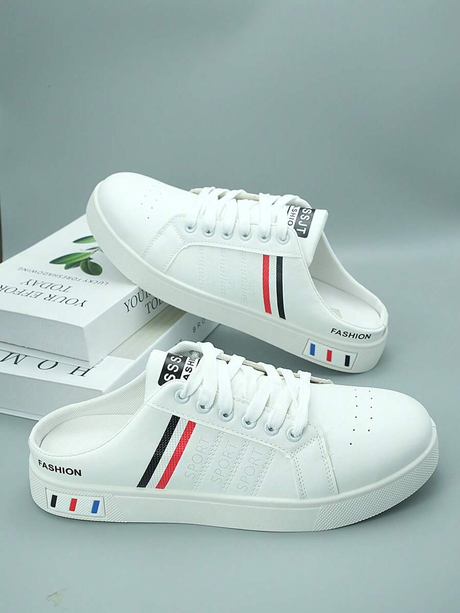 Pantuflas casuales para hombres, deslizadores con parte superior transpirable y de puntera cerrada, zuecos tipo mula sin talón, chanclas informales con estampado de letras y formas geométricas mixtas, adecuadas para otoño/invierno, zapatillas ligeras adecuadas para uso casual, al aire libre, fiestas, vacaciones y uso diario