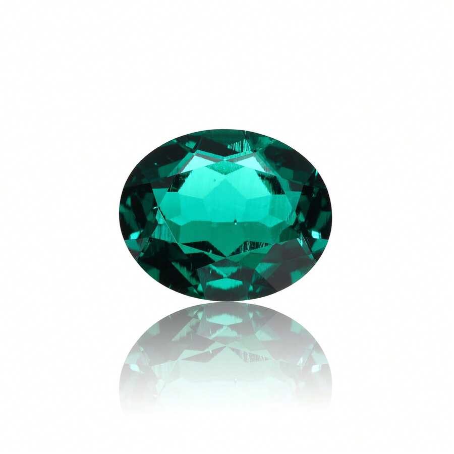 Una piedra preciosa oval cortada 100% de esmeralda de Zambia cultivada en laboratorio para elaborar charms y materiales avanzados de joyería DIY