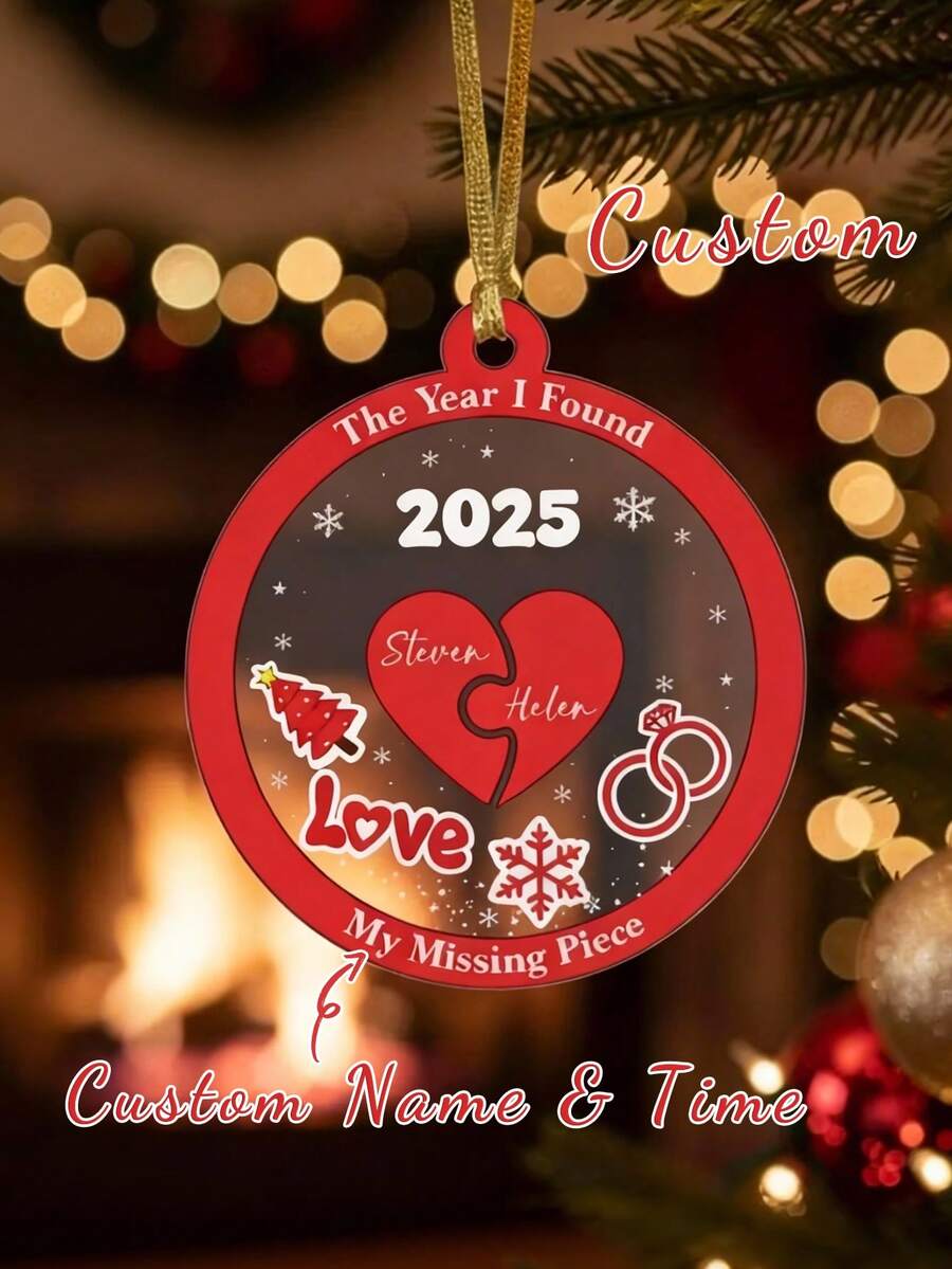 Adorno de Navidad personalizado para recién casados, rompecabezas de corazón con pieza faltante, recuerdo 2025
