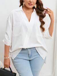 en Bloque de color Blusas De Talla Grande
