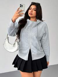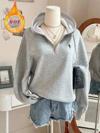 INAWLY Sudadera con cremallera, cordón y hombros caídos, forrada térmicamente, de talla grande y unicolor, para mujer, ideal para invierno, graduación, regreso a la escuela, graduación, maestros, otoño #1 Más vendidos