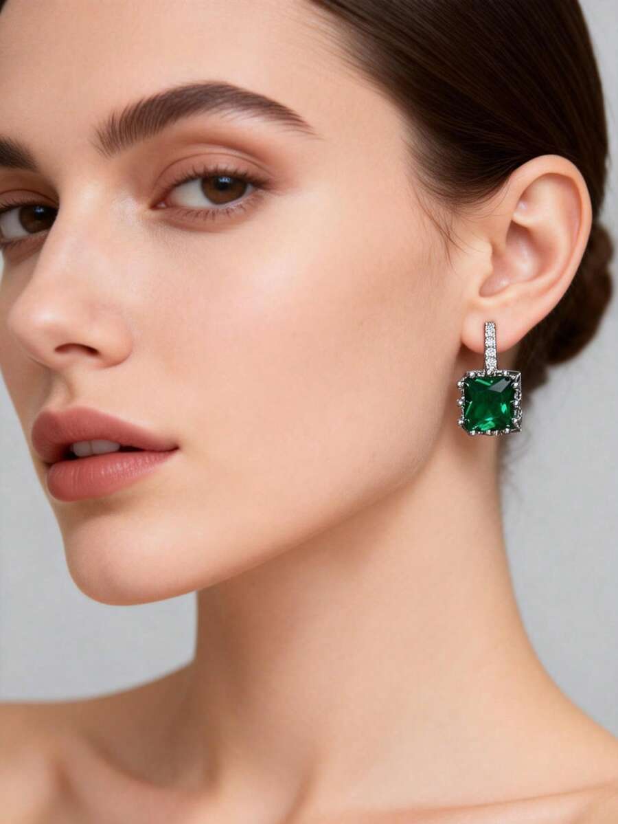 Pendientes con zirconia cuadrada de color azul profundo estilo Ramadán - Pendientes colgantes brillantes de estilo medio oriental adecuados para atuendos de festival