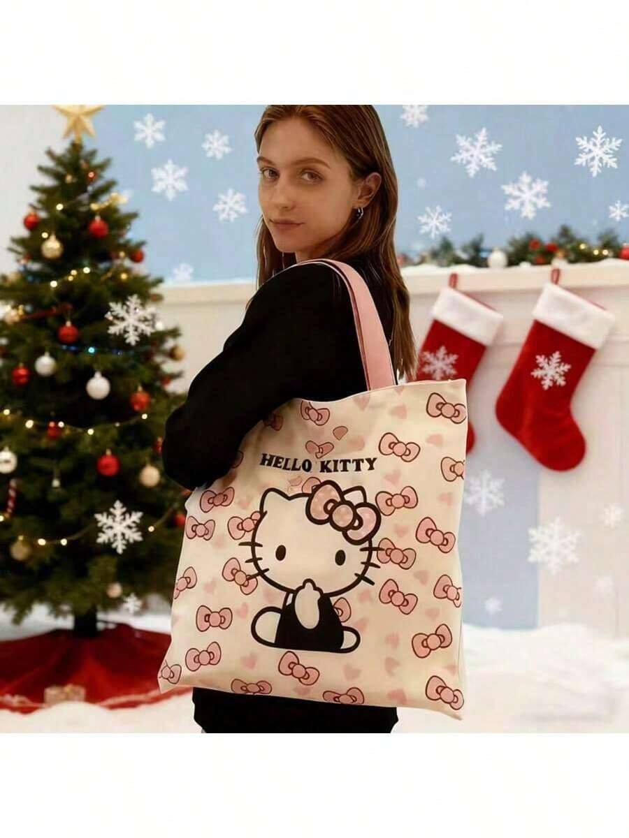 Sanrio 1 Set Bolso de lona con tema de Hello Kitty princesa - Bolso de lona duradero y billetera con lazo rosa y patrón de corazón, adecuado para fiesta/uso diario