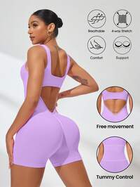 SlayformVestido deportivo de verano para mujer, esencial para yoga al aire libre, running, pilates, ir al trabajo, citas, playa, con diseño cómodo, elástico y sexy, de manga corta, espalda descubierta, control de abdomen, levantamiento y moldeado de la cintura, vigor juvenil #1 Más vendidos