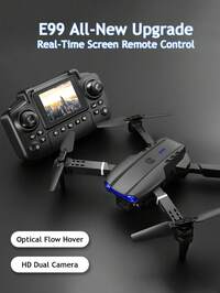CASRRA Drone E99 actualizado con cámara y pantalla de control remoto, cámara dual 720P, motor sin escobillas, retención de altitud, control por gestos, sensor de gravedad, Body plegable, disparo automático, apto para uso en interiores y exteriores, juguete de dron asequible para adultos, excelente regalo de cumpleaños y festividades, incluye batería de 1800mAh