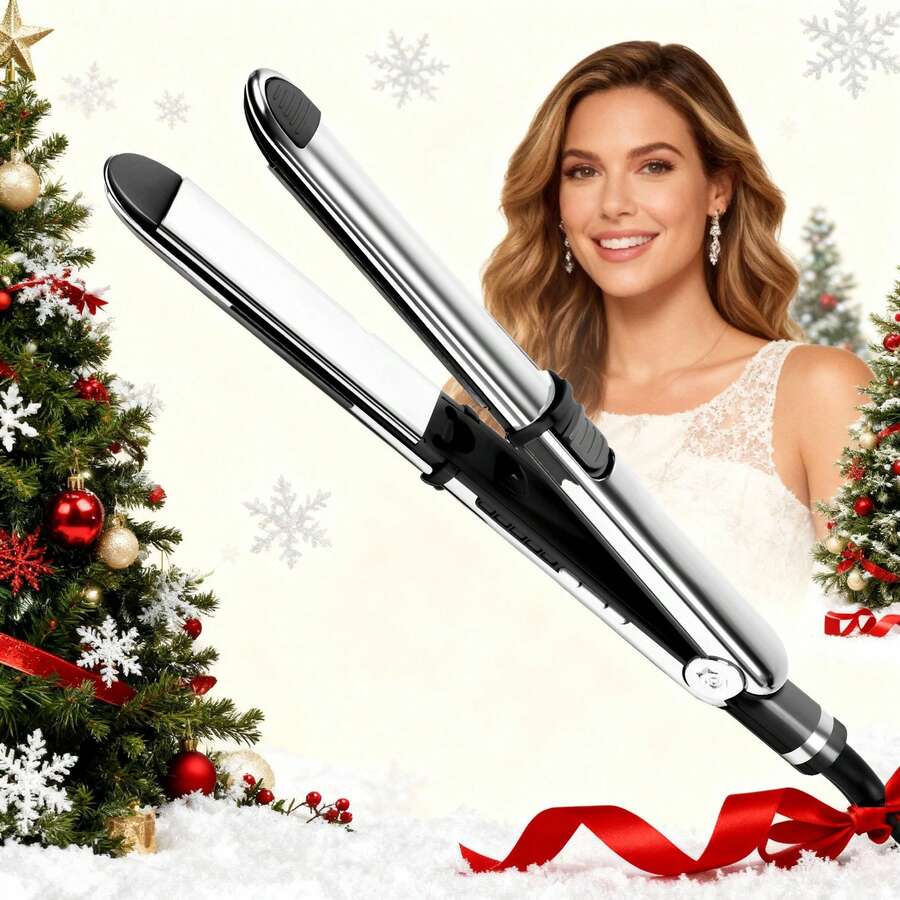 UKLISS Plancha alisadora y rizadora profesional 2 en 1 - Plancha cerámica con temperatura ajustable, pantalla LCD y bloqueo - Perfecta para todo tipo de cabello - Regalo ideal para mujeres, enchufe estadounidense
