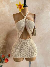 SHEINWYWH StoreSoleia Vestido mini de punto con textura de tela con conchas marinas para mujer, atuendo sexy para fiesta, cita, playa y vacaciones de verano, adecuado para citas de vacaciones, té de la tarde, temporada de bodas, crucero de playa, viaje por carretera urbano, vacaciones bohemias, festival de música #8 Más vendidos