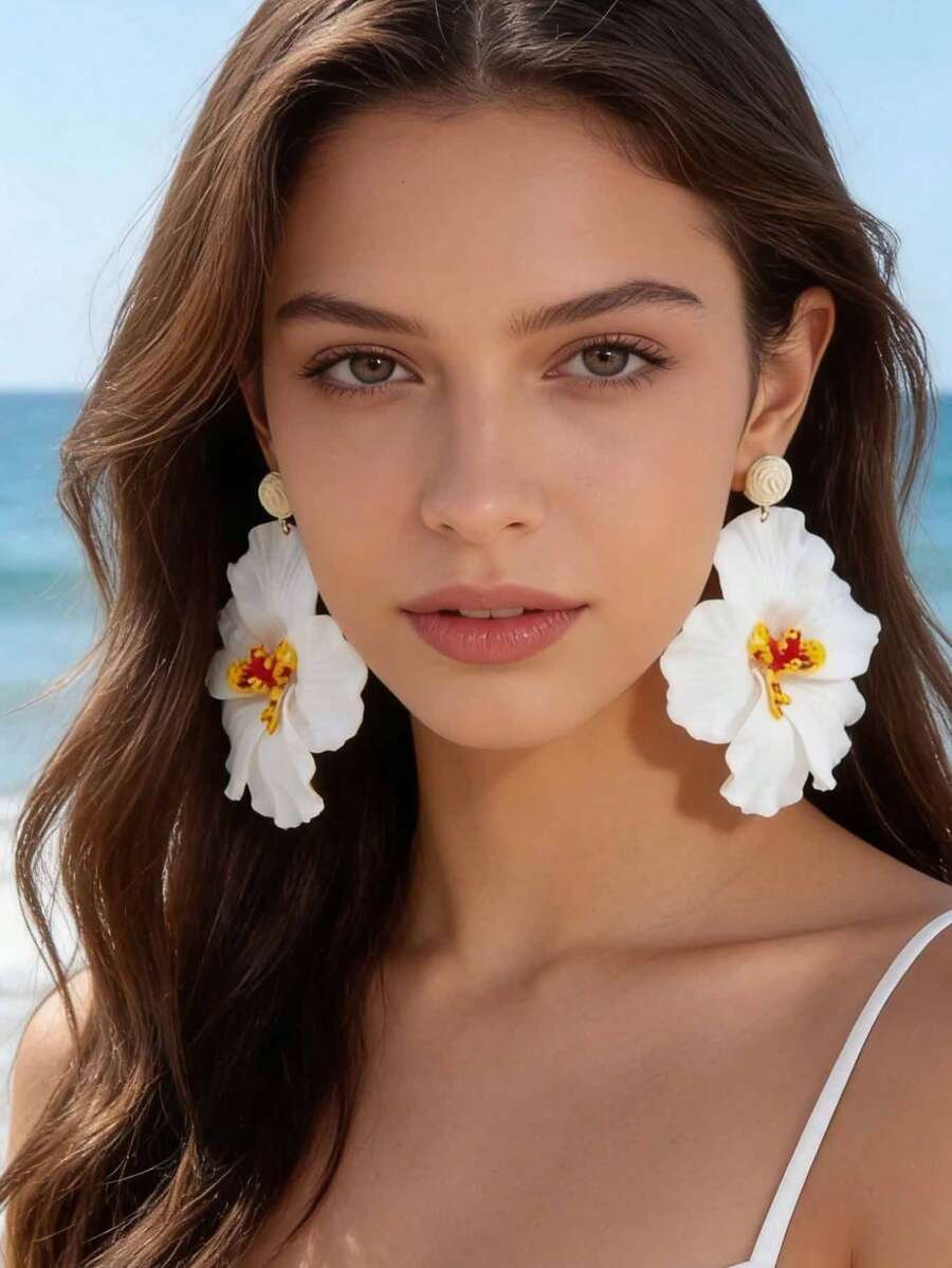 imoli 1 par de pendientes de flor de rafia hechos a mano con estilo bohemio de poliéster, adecuados como joyería de regalo para vacaciones en la playa